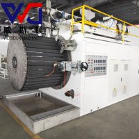 所生产的管材以高密度聚乙烯PE为主要原料,先经第一台挤出机挤出矩形管进入缠绕成型机,同时第二台挤出机喷出胶条,挤压复合而成,其内外壁平整光滑。根据标题的使用条件环刚度分为四个等级,最高可达16KN平方米,可适应百分之十以下的酸碱液体。该种管材具有耐腐蚀、质量轻、安装简便、通流量高、寿命长(50年)等优点。