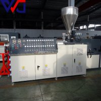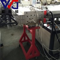 →生产线由双螺杆挤出机,模具,定型台,牵引机,切割机和堆放台组成。